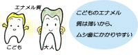 特に、子供の歯や、生えた直後の大人の歯はやわらかいのですぐに虫歯になってしまいます。